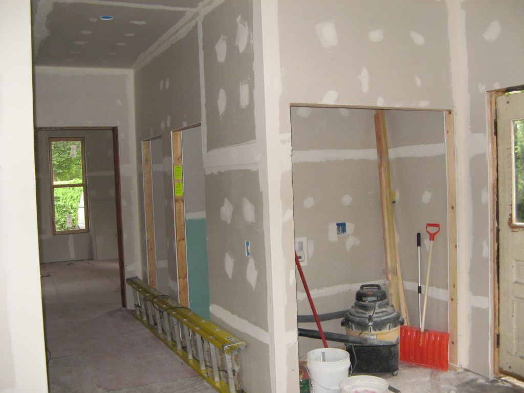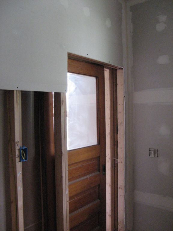 October 22, 2006 Interior framing almost complete Dining Room doors between parlors Front parlor double door Front hall First Floor Hall - Pocket doors, pocket doors, pocket doors! Blown in insulation, Salvaged staircase to be installed,